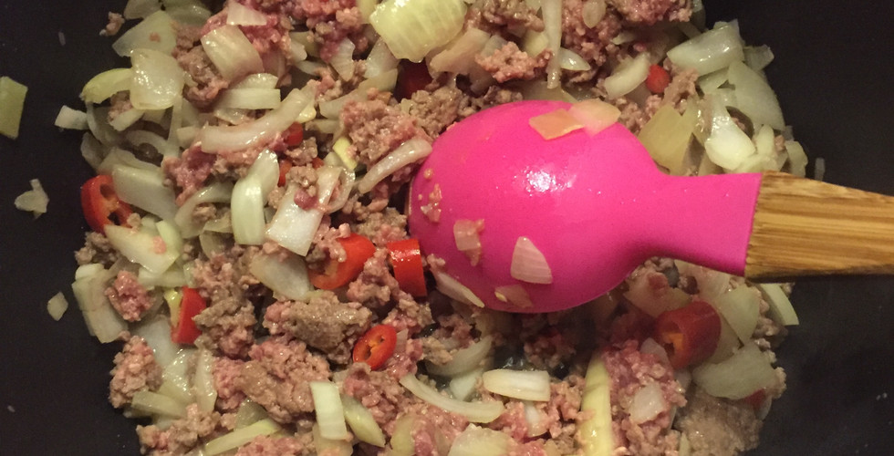 Yapılışı çok basit ve neredeyse normal ıspanak yemeği ile aynı: Kıymayı ve soğanı biraz tereyağıyla kavurun. Acı sevenler içine acı kırmızı biber de atabilir. Ardından ıspanakları ekleyip pişirin. Ispanaklar piştikten sonra dilimlenmiş sarımsağı ve tuzlu yuğurdunu ekleyip bir iki taşım kaynatın. Hiçbir aşamada sakın TUZ koymayın! Yoğurttaki tuz yeterli oluyor.